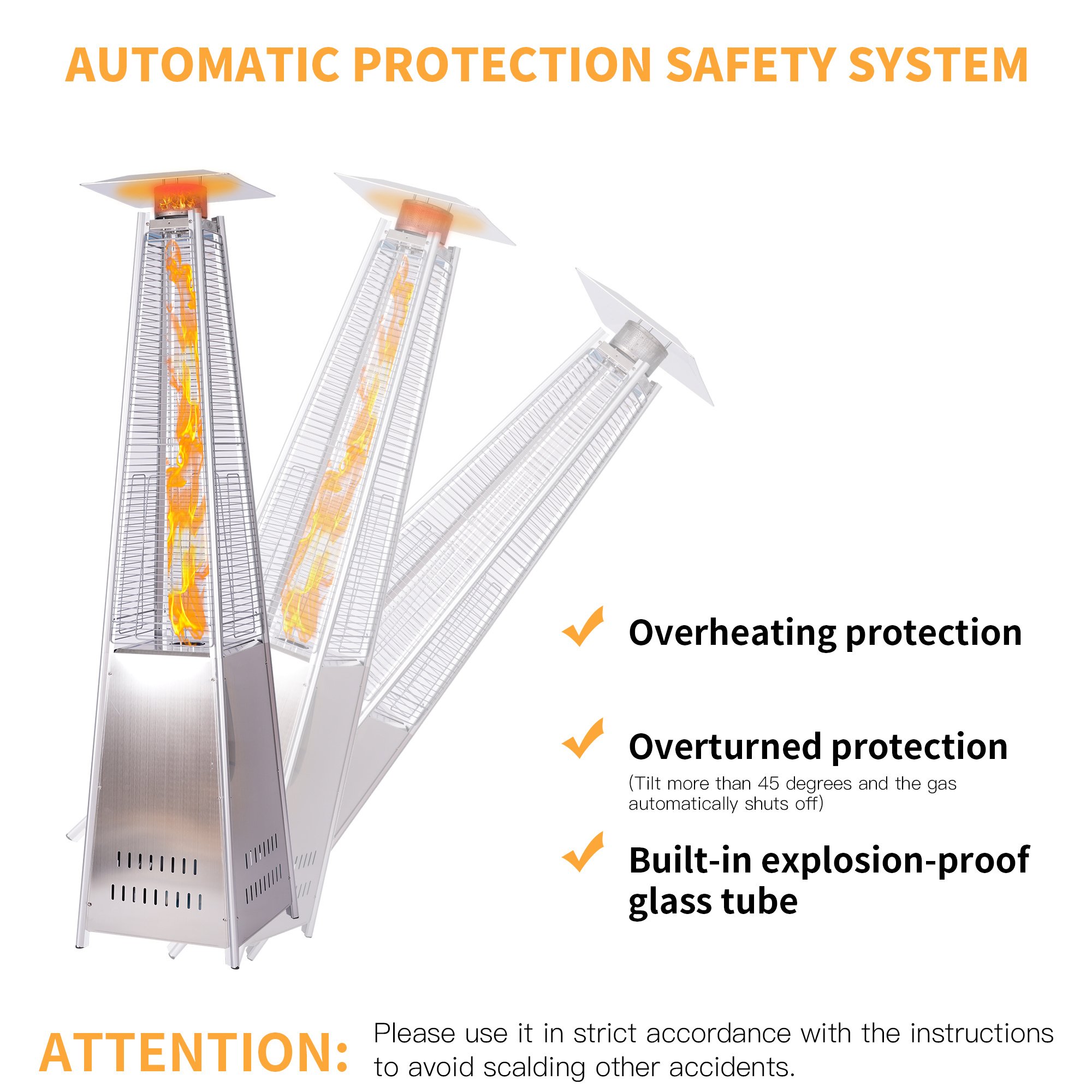 All outdoor patio propane heater hose and regulator needs to do the soap water test to verify fitting for every the joints of the regulator and confirmed no bubbles or a hissing sound. If you see bubbles or hear hissing, pls double check the connections to avoid any risk.